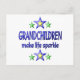 Show those special grandchildren how much they make life fun with this shiny design with stars and the words - Grandchildren make life sparkle. Makes a wonderful gift.