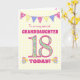 A pretty 18th Birthday card for your granddaughter, with polka dot bunting, primrose flowers and numbers filled with a primrose pattern, all on a pale yellow check gingham background. The front cover message is, 'To a very special GRANDDAUGHTER 18 TODAY!' The inside message is just a suggestion and you can easily personalise it or delete it if you prefer.