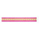 First Birthday ribbon in a pink, yellow, red and white girls watercolor painted dolly with hearts design. Customise with the greeting your birthday girls name on the wider ribbon choice only, currently reads Happy 1st Birthday Grand daughter Brielle. (PLEASE note the thinner ribbon will only show dolly's and a 1 on the heart). Perfect for wrapping a special first birthday gift. Uniquely painted in watercolor and designed by Sarah Trett.