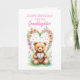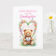 Send birthday wishes to your granddaughter on her first birthday in the cutest way possible with this lovely card. A teddy bear, in front of a bunch of colourful flowers, presents a heart showcasing the age of 1. Make their birthday unforgettable with this charming card. A 1st birthday card for a granddaughter.