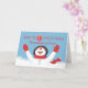 A delighted snowman is reaching up, taking great joy in the snowflakes falling and landing on its tongue. Bundled up in red, this snowman is ready for anything! Your granddaughter is celebrating her first Christmas and this card celebrates that joy!