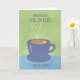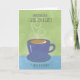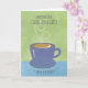 This Birthday card for Granddaughter features a hot, steaming cup of coffee with swirls of steam and foam. Cup and saucer are purple on a light blue and kiwi green background with a watercolor effect. Thin, modern typeface for the front sentiment. Perfect way to say you love her "a latte".