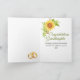 A lovely Granddaughter Bride wedding Day Congratulations card with watercolor floral yellow sunflowers, foliage, gold rings and string lights with a dark green border. The perfect way to say congrats to your bride Granddaughter and wish her all the best on her marriage. Personalise with name and inside message.