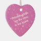 This is a wonderful Valentine ornament for a grandparent to give to a granddaughter. It features your customised text on a pretty pink confetti background of hearts and stars. Currently, the front side says "Granddaughters are the stars in our hearts" in light pink, with the back side holding your child's name and your message. All the text is fully customisable, so you may make it say whatever you'd like. This is a special keepsake gift that your granddaughter will treasure forever.