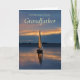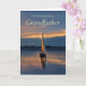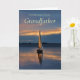 A serene image of a sailboat, its sail aglow with the warm light of the setting sun, reflected gently on the water. In loving memory of a grandfather.