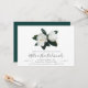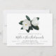 Modern floral bridesmaids brunch invitation features chic block and italic lettering mixed with elegant handwritten script, topped by a pair of graceful white magnolia flowers and lush dark green leaves.