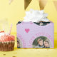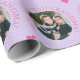 This pretty pink and purple coloured wrapping paper is ready for you to upload your favourite photo. The background has a pattern of small scattered lilac hearts, and larger pink hearts. Add your own greeting, or use the already prepared "WE LOVE YOU GRANDMA!" in matching pink. [Photography © Storytree Studios, Stanford, CA]