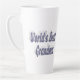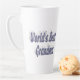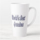 Latte mug with World's best grandma in 3D blue-grey text. Mug available in several styles and colours.