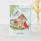 This hand-painted watercolor features a charming birdhouse adorned with a Happy Birthday banner, as a tufted titmouse and a cardinal stop by on a crisp January winter day. Soft seasonal details and gentle colors create a warm, thoughtful scene, making it a lovely birthday piece for grandma who celebrates in January.