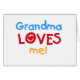 Grandma Loves Me T-shirts, cards, stickers, bodysuits bags, and more with colourful red, yellow, and blue text and heart design. These Grandma Loves me apparel and gift items will make grandma smile!