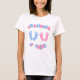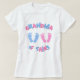 Cute shirt with "Grandma of Twins" in blue text and cute baby footprints in blue and pink.