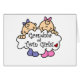 Two adorable baby girl twins dressed in lilac and pink sleepers hold onto a cloud that reads "Grandma of Twin Girls!" on grandma of twin girls T-shirts, mousepads, cards, mugs, tote bags, and more!