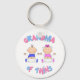 Cute key chain with "Grandma of Twins" in pink and blue text and cute baby boy and girl in blue and pink clothes.