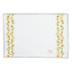 The design has a sunny mood, with vibrant sunflower colours set on a white background. It is also a bit nostalgic and makes me think of the pillowcases of my Grandmother: hand embroidered flowers on white bed linen and, of course, the ever present monogram.