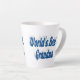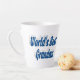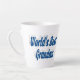 Latte mug with World's best grandma in 3D sea blue text. Mug available in several styles and colours.