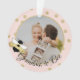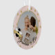 Announce your baby to be to the grandma to bee with this adorable "Grandma to Bee" photo ornament in pink, white and gold. Cute bumble bee ornament with random gold dots, editable background colour and photo. On the reverse side of ornament a last name and due date or edit to add your own special message to the grandma to be.