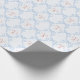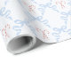 This Christmas wrap has a blue bow trellis pattern with candy canes in the center.
