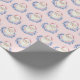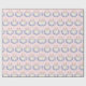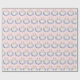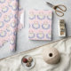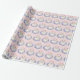 This Christmas gift wrap has a Santa face with blue damask wreath on a blush pink background.