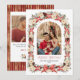 Celebrate the season with timeless elegance and a touch of Grandmillennial charm with this beautifully detailed Christmas photo card. An arched photo frame is surrounded by a ribbon-wrapped garland of winter florals, pinecones, and greenery, creating a classic holiday look accented by a luxurious red and gold bow. The graceful arch shape adds a soft, romantic touch, perfectly complementing the card’s vintage-inspired aesthetic. Finished with a festive striped back design, this card blends traditional beauty with modern refinement — a warm and sophisticated way to share your holiday greetings with loved ones.