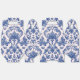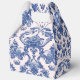 This party gable box design has a preppy grandmillennial design featuring a navy blue damask pattern on a blush pink background.