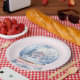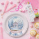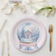 Grandmillennial Pink & Blue Damask Snow Globe Paper Plate