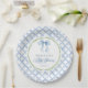 Grandmillennial blue bow baby shower paper plate with lattice design is a charming way to add both elegance and personality to your celebration. This customisable party plate features a soft watercolor blue bow at the centre, encircled by a delicate green leafy wreath that enhances the timeless aesthetic. The outer edge showcases a hand-painted blue lattice pattern, reminiscent of vintage china and classic Southern charm, giving the design a refined yet playful touch. The style embodies the grandmillennial trend, blending traditional motifs like bows and florals with fresh, modern details that feel both nostalgic and current. Customisable text in the centre allows you to add the guest of honour’s name, event, and date, making the plates a personalised detail that doubles as a keepsake. Perfect for baby showers, gender reveal parties, or even a first birthday, these disposable plates bring convenience without sacrificing sophistication. Their versatile design complements both classic and modern shower themes, working seamlessly with floral arrangements, pastel décor, or elegant tablescapes. Whether serving cake, hors d’oeuvres, or snacks, these plates elevate the party experience while keeping cleanup simple. A stylish blend of practicality and beauty, these custom baby shower plates are ideal for hosts looking to incorporate a touch of grandmillennial elegance into their celebration.
