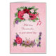 This birthday card for a grandmother has beautiful roses in full bloom. The pink background has pale pink roses showing through. A gorgeous, traditional birthday card that will give real joy.