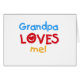 Grandpa Loves Me T-shirts, cards, stickers, bodysuits bags, and more with colourful red, yellow, and blue text and heart design. These Grandpa Loves me apparel and gift items will make grandpa smile!
