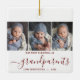 Help them commemorate their grandchild's first Christmas with this beautiful modern keepsake ornament. The burgundy red text reads "Our first Christmas as grandparents," with the word "grandparents" in elegant handwriting script with flourishes before and after. Replace the three sample images with your favourite vertical photos, and add baby's name and the year.
