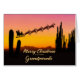 A Christmas card for your grandparents showing Santa flying over the desert. Lots of tall cactus are seen in silhouette. Wish a merry Christmas from the desert with a lovely sunset coloured card.