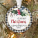 Pretty holly leaves and berries on a classic black and white buffalo check background for these fun "grandparents first Christmas" ornaments