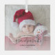 Help them celebrate their first grandchild with this beautiful modern keepsake ornament. The off-black text reads "Our first Christmas as grandparents," with the word "grandparents" in elegant handwriting script with flourishes before and after. Easily replace the sample image with your favourite photo of the new baby, and add his or her name and the year. A white gradient filter helps make the text pop.