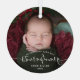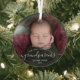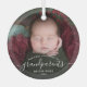 Help them celebrate their first grandchild with this beautiful modern keepsake ornament. The white text reads "Our first Christmas as grandparents," with the word "grandparents" in elegant handwriting script with flourishes before and after. Easily replace the sample image with your favorite photo of the new baby, and add his or her name and the year.