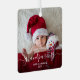 Help them celebrate their first grandchild with this beautiful modern keepsake ornament. The off-black text reads "Our first Christmas as grandparents," with the word "grandparents" in elegant handwriting script with flourishes before and after. Easily replace the sample image with your favourite photo of the new baby, and add his or her name and the year. A white gradient filter helps make the text pop.