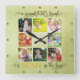Grandparents Photo Collage Rustic Green Watercolor Square Wall Clock