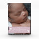 Introducing our elegant and stylish Grandparent keepsake photo block, designed with a modern script in white, beautifully contrasted against a captivating blush pink background with little white hearts. This heartwarming block proudly displays the phrase promoted to Grandparents, making it a perfect gift for new grandparents. But it doesn't stop there – this personalised keepsake can be customised with your baby's name, birthdate, and cherished photo. Celebrate the arrival of a precious little one in a contemporary and meaningful way with this striking photo block - truly an exceptional gift for grandma and grandpa.