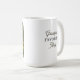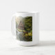 A serene coffee mug that says, "Grandpa's Favorite Mug" but the text can be personalized to any name or family member. The illustration is an a-frame log cabin out in the mountains and woods with a deer next to a rippling stream.
