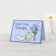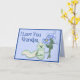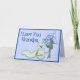 This cute caterpillar has a bouquet of blue flowers. The background is blue daisies and darker blue border. Text says I Love You Grandpa in card front. Inside verse. Greeting and Closing area can be customised by you. Matching postage available.