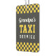 Does Grandpa have a new post-retirement career as a taxi driver for his grandkids? Adorn his car with this cute and funny air freshener with a yellow and black chequered cab theme. Design features "Grandpa's Taxi Service" in white and yellow lettering. Can be customised with his preferred grandpa nickname.