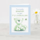 This heartwarming St. Patrick’s Day card for a grandson features a loveable teddy bear in soft green, surrounded by cheerful details. The card's blue border adds a fresh, fun touch, while the bear and green shamrock bring a playful hint of luck. Inside, a cosy, heartfelt message wishes the little one a day filled with warmth, joy, and all the blessings of his first St. Patrick’s Day. This card is a perfect way for grandparents to celebrate this special milestone with their precious grandson.