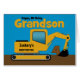 A fun fourth birthday card for a grandson who loves construction equipment and earth movers. It has a yellow digger on the front with an area on the cab where you can change the name of the construction company to your grandson's name. The number 4 is being scooped up in the bucket of the digger.If you choose the big card please edit the image to 'Fill' for full coverage on the card front, if you decide to return to a smaller card choose 'Fit' when you edit the image.© PamJArts