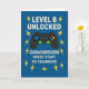 A bold and playful birthday card for your gaming-loving grandson turning 8, featuring a game controller and striking lightning bolt background in vivid blues and yellows. The front text reads “LEVEL 8 UNLOCKED,” celebrating his new age with gamer flair. Inside message is upbeat and encouraging, perfect for a growing boy who loves games and brings joy to your family.