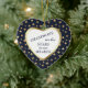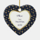 This is a wonderful Christmas ornament for a grandparent to give to a grandson. It features a white heart shape framed in shiny gold, and set against a gold star studded dark blue background. In the center is your customized text in dark blue. Currently, the text says "Grandsons are the stars in our hearts". The text is fully customizable, so you may make it say whatever you'd like. The back of the ornament has the same image with his name, and your signature. This is a special keepsake gift for Christmas, his birthday or graduation that your grandson will treasure forever.