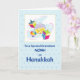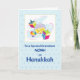 Celebrate your grandson's Hanukkah with a personalised card just for him! Featuring a soft blue background with slightly darker blue dots, this card showcases a dreidel and gold coins. The front can be customised with his name, making it a one-of-a-kind keepsake. This delightful card is a perfect way to add a personal touch to your Hanukkah celebrations, making your grandson feel extra special and loved during the Festival of Lights.