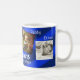Personalised grandsons photo gift mug for grandparents, or parents, with four photo templates. Wide, painted blue stripes are the background for the boy's photos with a place for "Grandsons" or "Sons" or "Grandkids" text and a message beneath, such as "we love you Nana & Papa". Add each boy's (or child's) name above the photo. Use photos with the subject in the centre for best results. This mug will print as you see it in the preview. Changing the size may alter the design.