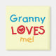 Granny Loves Me T-shirts, cards, stickers, bodysuits bags, and more with colourful red, yellow, and blue text and heart design. These Granny Loves me apparel and gift items will make granny smile!