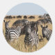 Grant's Zebra Classic Round Sticker. A herd of Grant's Zebras on the savanna. Mara Triangle - Maasai Mara National Reserve, Kenya, Africa. Photo by Javi Lorbada.
