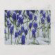 Postcard with photo of blue grape hyacinths in snow