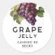 Editable homemade grape jelly canning label featuring a bunch of red grapes. Make your own canning labels for your favourite homemade recipes. Perfect for preserves, homemade gifts or as kitchen pantry organiser.