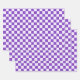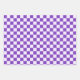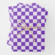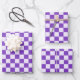 A purple and white chequerboard pattern with alternating squares, creating a balanced design. The vibrant colours give a playful, energetic feel.